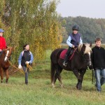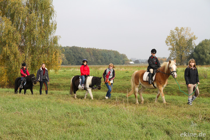 Als die Sonne heute Morgen zeitweise die Wolkendecke durchbrach entschloss ich mich mit meiner Kamera aktuelle Reiterferien Fotos einzufangen. Doch in der Reithalle war es ungewöhnlich ruhig. Nur Ginger & Denise traf ich an und erfuhr dass die Reiterferien Gruppe bereits ihren geführten Ausritt gestartet hatte. Nachdem ich Ginger fotografiert hatte, konnte ich mit dem Drahtesel zügig zur Gruppe aufschließen um dann die geplanten Fotos zu schießen.