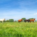 Bei angenehmen Sonnenschein lassen es sich die Pferde auf der Koppel gut gehen.