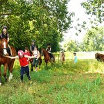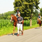 Nach dem gemeinsamen Frühstück wurden die Pferde gesattelt und getrenst. Dann folgte der geführte Ausritt entlang der Parthe nach Zweenfurth.