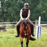 Heute Morgen zeigte sich das Wetter noch von der Schokoladenseite ohne Gewitterwolken in Sichtweite und so konnten die Reiterferiengäste aus Baden-Württemberg und Bayern ungestört den Anweisungen der Reitlehrerin auf dem Außenplatz folgen.