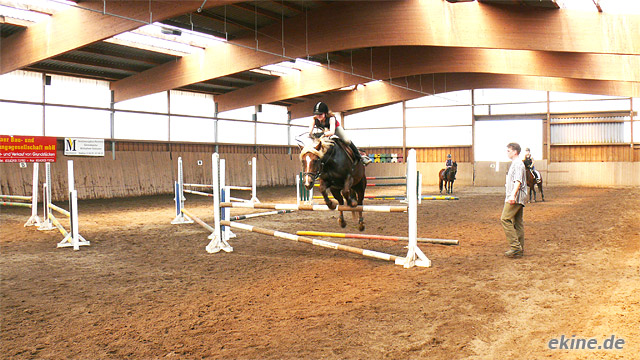 Eine leichte Anspannung war aus den Gesichtern der Springreiter abzulesen kurz bevor die Reitlehrerin ihr Startzeichen verlauten lies. Denn...