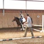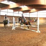 Am späten Vormittag trafen sich die Springreiterinnen, Katharina auf Waldmaus und Joelle auf Nostradamus, zur Trainingseinheit in der Reithalle.