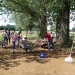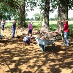 Mehrere Schubkarren voll Holz wurden gesammelt und dicke Äste mit der Laubsäge von Hand gesägt!