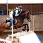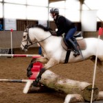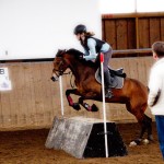 Irritiert von der falschen Wegleitung des Navigationsgeräts verzögerte sich meine Ankunft auf dem Reiterhof in Bahren um ca. 15 Minuten, sodass ich pünktlich nach dem Warmreiten an Ort und Stelle war. Katharina und Joelle auf ihren Ponys Waldmaus und Filou nutzten das Vielseitigkeitstraining in der Grigoleit-Halle, um sich auf das bevorstehende Turnier mit Indoor-Geländeritt vorzubereiten.