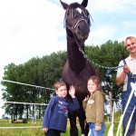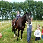 Hier durfte sich ein kleiner Mann auf das größte Pferd im Stall setzen.
