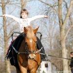 Geschrieben von Joelle – Auch die Voltigruppe hatte heute das schöne Wetter genutzt, um das erste Mal nach dem langen Winter wieder einmal im Freien zu turnen. Mit insgesamt vier Pferden ging es also raus auf den Platz, und es wurde viel an dem lockeren und korrekten Grundsitz, aber auch an Übungen wie Kniestand und Stützaufschwung gefeilt. Da alle ihre Sache ziemlich gut machten, war heute viel Lob von der Trainerseite zu hören. Weiter so! 😉
